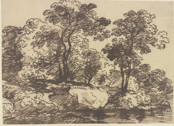 Curator: Edvard Munch's "Evening in the Park," created in 1903, is an etching on paper, currently held at The Art Institute of Chicago. Editor: It’s strikingly stark. The contrasts between the white of the paper and the dark, almost aggressive, lines create an intense atmosphere. It's definitely more disquieting than calming. Curator: Munch's printmaking, particularly his etchings, often involved experimenting with line and texture. Here, look at how he uses densely packed lines to define form. It's not just about representation, but about creating a mood through the very process of mark-making. How the metal plate is etched and then printed affects the end result enormously. Editor: Agreed. And the composition itself reinforces this. The way the massive, almost impenetrable bush dominates the right side, juxtaposed with the more open, yet agitated, tree on the left—there’s an imbalance, a tension. What were his processes when he came to make prints of landscapes, and how did these artistic practices play into the general market of selling Munch's prints? Curator: Printmaking offered Munch a way to disseminate his art to a wider audience, providing some financial independence and increasing his exposure. Think about it in terms of accessibility. But let’s not overlook the emotional dimension here. Landscapes were a way to convey powerful, complex feelings that often are lost to modern art due to commercial pressure, so one way the landscape in Evening in the Park takes hold of those traditional practices and presents new sentiments. Editor: It’s a somber take on Impressionism for sure. Rather than the fleeting light and cheerful atmosphere of, say, Monet, we have something much darker and more psychologically charged. Curator: Precisely. And to conclude: the etching process is intrinsically connected with the context of production, impacting on the final meaning of the print and the labour. Editor: I agree, and I appreciate how this analysis makes me think deeper about landscape print.