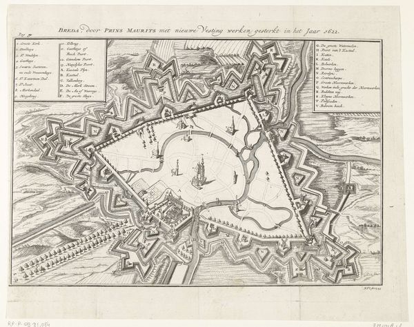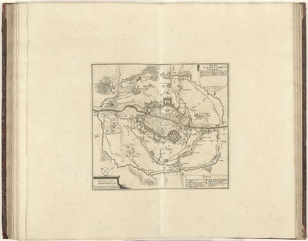 Around 1693-1696, an anonymous artist created this print titled "Plattegrond van Yperen." It is a detailed map of the city of Ypres, now in Belgium, offering a glimpse into its historical and cultural context during the late 17th century. Ypres, located in Flanders, endured many sieges. The star-shaped fortifications in the map reveal a society living in a state of near-constant military readiness. Looking at this map today, one can only imagine the anxiety of living in a city so directly shaped by the ever-present threat of war. This map presents more than just geographic data; it is a potent symbol of power, control, and the lived experiences of those within its walls. It serves as a reminder of the complex interplay between military strategy, urban development, and human lives in the early modern period.