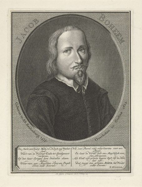 Theodor Matham created this portrait of Henricus Regius using engraving techniques. The most immediate formal quality is the oval frame, an emblem of the period. Within this boundary, lines define the form of Regius, emphasizing his composed demeanor. The texture achieved through fine lines creates depth and subtly models the face, bringing it to life. The varying densities of the engraved lines produce areas of light and shadow, providing a sense of volume and dimension. Consider the gaze of Regius, directed towards the viewer with a subtle knowing. This choice involves the viewer directly in the semiotic exchange, inviting you to consider the subject's intellect. The inscription "CANDIDE ET GENEROSE" suggests the qualities of openness and nobility. The formal qualities of the engraving—its lines and careful texturing—invite ongoing interpretation, suggesting that what we see is but a glimpse into the complex character of Henricus Regius.