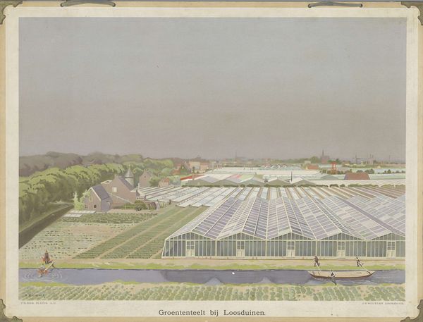 Editor: So this is Charles Hofmann’s "View of Benjamin Reber's Farm," an oil painting from 1872. It’s got this kind of charming, folk-art feel to it. It's just so…peaceful. How do you interpret this work? Curator: This work offers us a glimpse into cultural memory, specifically of rural Pennsylvania. Notice the careful detailing of the farm and the surrounding landscape. Fences act as key signifiers. What emotional weight do these fences bear? Editor: Well, literally, they contain things...and keep other things out? Curator: Precisely! Fences visually denote boundaries. In art, they often signal control and ownership, separating cultivated space from the wild. The fences could evoke the values associated with settled agrarian life. Also, think about the bridge, appearing fragile and thin. What message could it send to its contemporary viewers? Editor: That maybe civilization is just this thin layer on top of nature? And Hofmann's very deliberately chosen composition conveys this sentiment? Curator: Exactly! The arrangement, almost a bird's-eye view, feels staged, intentionally crafted, suggesting perhaps pride and aspiration. This isn't simply a depiction of a farm; it's a symbol. In Pennsylvania "folk art" the location is critical, as communities expressed regionalism strongly. Editor: So it is trying to communicate something deeper about the relationship between the people and their land? Thanks! That makes me see the piece in a whole new light! Curator: Indeed. Visual symbols in art become vessels, conveying not just immediate scenes, but enduring values of community and place across time.