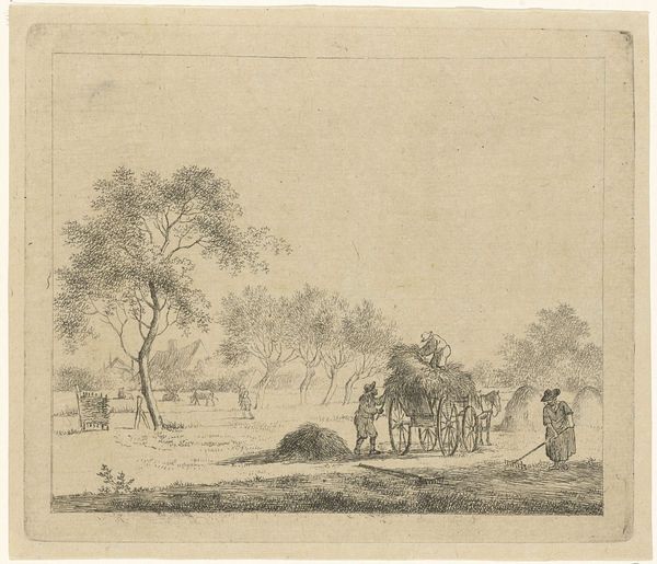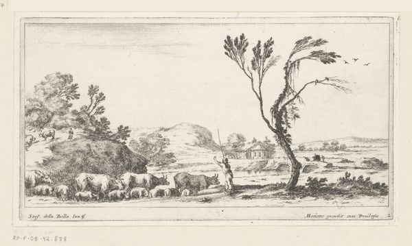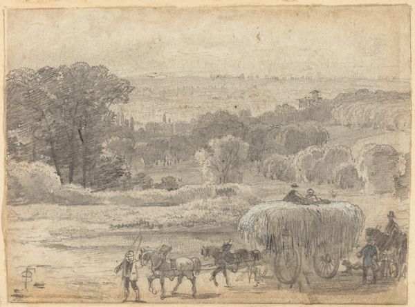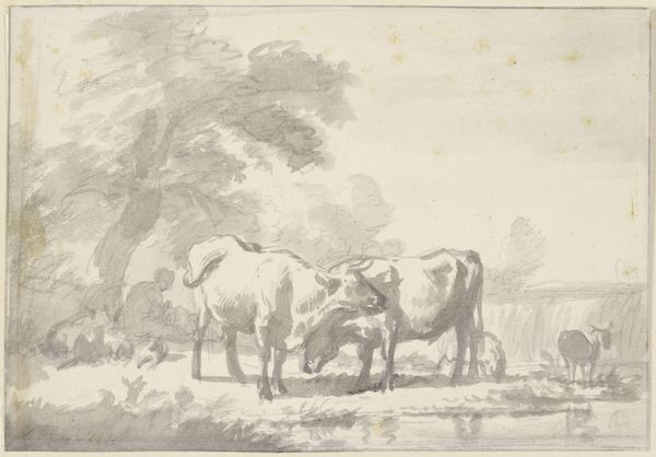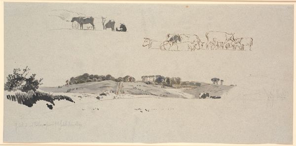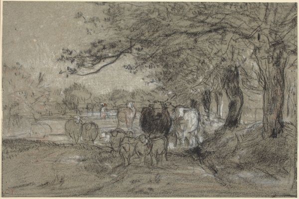 Otto Scholderer created this untitled pencil drawing, "Hirte mit Herde am Dorfeingang", with delicate lines and a monochromatic palette. The composition's balance creates a sense of pastoral calm, depicting a shepherd guiding livestock into a village. The light touch of the pencil makes the scene feel dreamlike, evoking an atmosphere of quiet observation. This drawing offers a glimpse into the semiotic structure of rural life. Scholderer employs linear perspective, drawing the eye from the foreground figures to the village in the background, constructing a visual hierarchy that mimics social structures. The softness of the pencil strokes does not give clear definitions, inviting viewers to interpret the scene through their own cultural codes, challenging the fixity of rural idylls. Consider how Scholderer uses the simplicity of line and form to destabilize any romantic notions. This work is a reminder that art can be a site of ongoing interpretation, its meaning shaped by each viewer's engagement with the artwork.