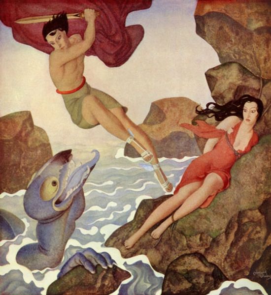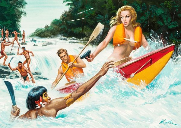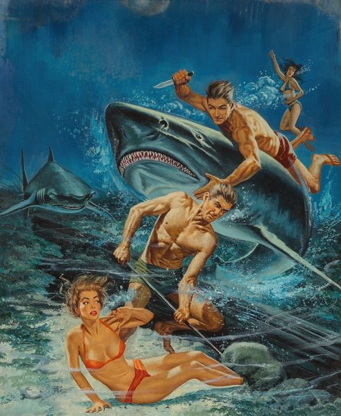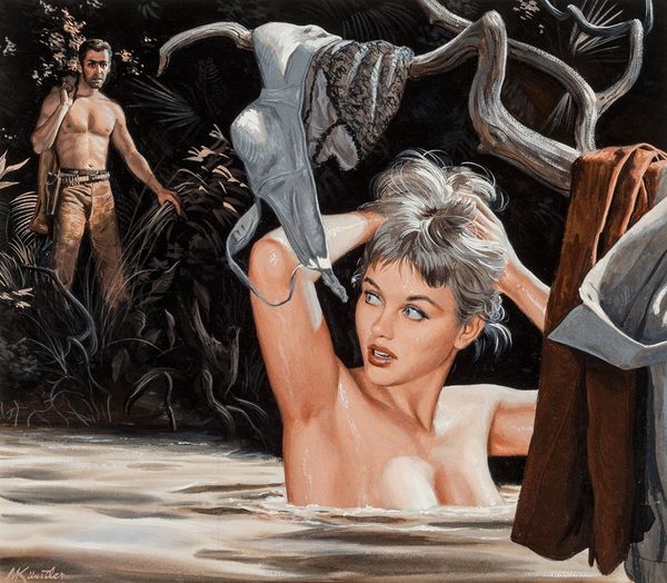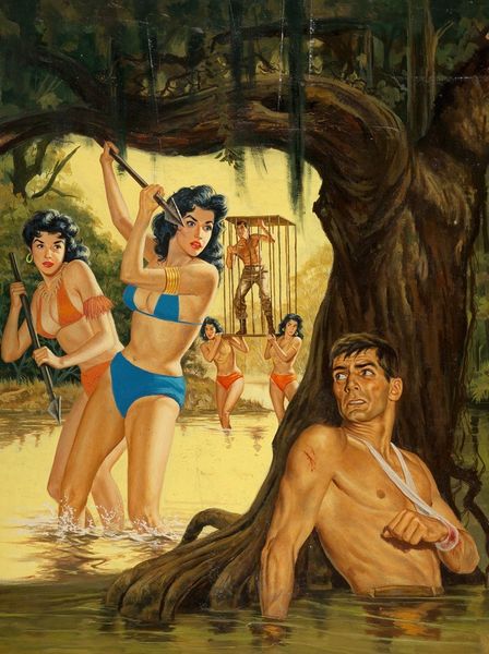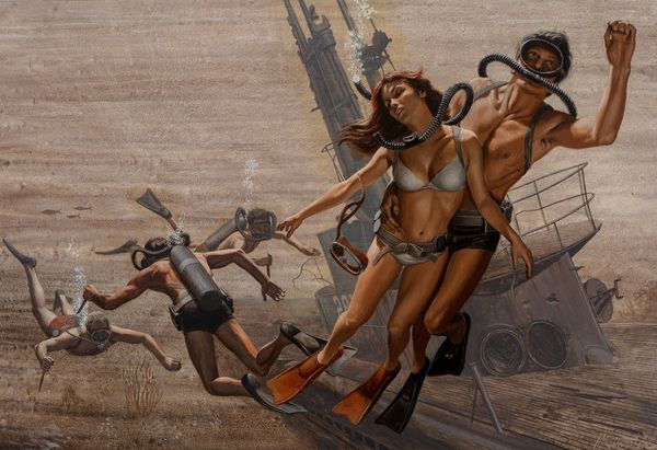 Victor Prezio made "Lost Treasure", likely as an illustration, and there’s something about the way he's handled the paint, this breezy looseness, that makes it so appealing. It's like he’s not trying too hard, but he's still putting everything he has into it. Look at the way he’s rendered the water, layering different shades of blue and green to create depth and movement. It’s almost like he’s inviting us to dive in and explore the mysteries of the deep, right? Then, notice the gold coins spilling out of the sunken chest in the foreground. Each coin is painted with just a few quick strokes of the brush, but together they create this shimmering, almost hypnotic effect. Prezio’s work reminds me a little of Norman Rockwell's, but with a more playful, slightly pulp sensibility. Both artists were masters of capturing everyday life with humor and warmth. Ultimately, "Lost Treasure" is a reminder that art doesn't always have to be serious or profound. Sometimes, it can just be fun, right?