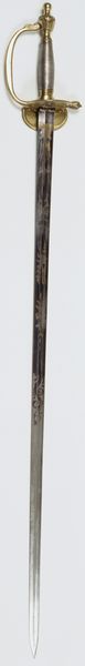 This "Officiersdegen," or officer's sword, of unknown date was created by an anonymous maker using materials of wood, metal, and silver. It's a relic of a time when social standing was often enforced, or defended, at the tip of a blade. This sword speaks volumes about power, status, and the performance of masculinity. It represents an officer's authority, while also revealing the stark class divisions of the time; for every officer who wielded such a weapon, there were countless soldiers who bore the brunt of its use. The cold, hard metal contrasts sharply with the warmth of the wooden handle, offering a tactile sense of the human hand that once gripped it. The aesthetic of the sword might evoke a sense of admiration, but perhaps it should prompt a deeper reflection on the structures of domination it symbolizes. What untold stories lie within its polished surface, reflecting both the light and the shadows of its past?