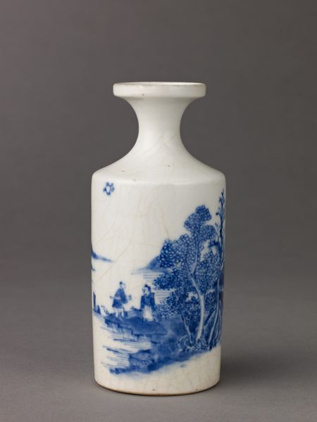 This stoneware jug was made by John Bell in the 19th century, a period marked by significant industrial and social change in America. Born into a family of potters, Bell's work reflects a cultural moment steeped in the values of craftsmanship and agrarian life, yet also touched by the burgeoning market economy. Jugs such as this one were functional items, but also became canvases through which Bell and other potters expressed their artistic identity. The cobalt-blue floral decoration on this jug is typical of the region and speaks to the blend of utility and artistry that defined Bell's practice. Consider how Bell’s work intersects with narratives of labor, immigration, and cultural exchange. Bell's stoneware provides a tangible link to the past, inviting us to consider the lives and experiences of those who lived and worked during this transformative era.