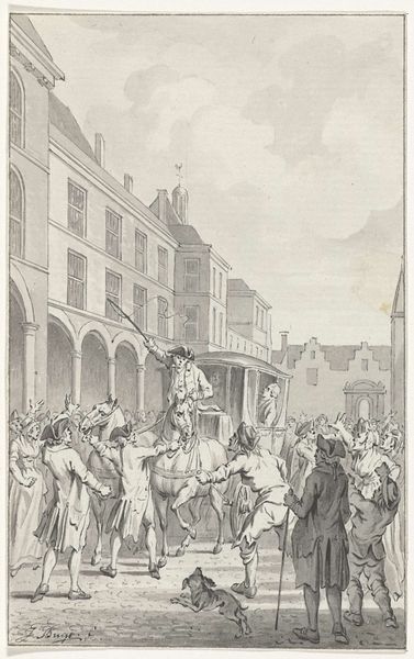Editor: This is William Hogarth’s "First stage of cruelty", an engraving from 1751. It depicts children torturing animals. It's… well, quite disturbing. What symbols and imagery stand out to you in this piece? Curator: The most immediate is, of course, the brutal treatment of animals, but let's look closer. Consider the scratched names on the post – Thomas Nore and other individuals are claiming ownership, perhaps of a dark deed? Look how one boy pierces an animal's eye. What is the lasting impression of that moment of piercing, in you? Editor: The way all of the figures seem engaged in violence. Like, the act of piercing is happening to all of us at once. Even those seemingly watching are implicated, a mirror of complicity. I suppose you're saying, these children represent society. Curator: Exactly. It speaks to a deep anxiety about social order, that violence begets violence. But also the inscription that suggests there is someone named “Nore,” and other children whose name starts with "T", implies a continuity of trauma, or repeated deeds. The "First Stage" suggests that is a narrative or a morality tale, with other stages involved. Hogarth suggests here not just action but a kind of symbolic predetermination. Is it enough for people to say “we all witnessed it?” How might we actively interrupt cycles of harm? Editor: So, even in something that appears to be simply illustrative, we can see the layers of a broader societal critique and intergenerational trauma. Curator: Indeed. Hogarth invites us to see beyond the surface and ask what structures underpin such behaviour, what dark legacy they might inherit, what collective history compels us to witness such suffering, what stories of the soul drive their deeds. Editor: That gives me a lot to think about regarding how images carry meaning. Curator: For me too. Seeing such works connects us not only to the past but also to the symbols that still unconsciously inform our world.
