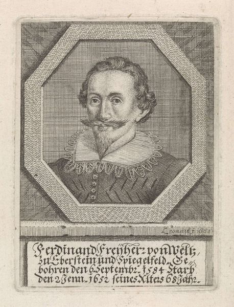 Salomon Savery's engraving presents Joannes Buingha, mathematician and bookkeeper, framed by symbolic inscriptions. The name of the subject is surrounded by the phrase "Timeas. Recte faciendo neminem," which refers to "Fearing to do anything dishonestly." The radiant sun above Buingha’s head echoes the divine authority associated with knowledge and truth throughout history. We see similar solar symbols in ancient Egyptian art, representing Ra, the sun god, and later in Renaissance emblems of enlightenment and intellectual prowess. This symbol reflects a profound connection to ancient ideals of wisdom. Yet, here, it is placed above the figure of a bookkeeper, a seemingly mundane profession. This juxtaposition highlights the evolving status of intellect and the shifting cultural values that elevate practical knowledge. The visual language of the image, resonating with enduring symbols of divine wisdom, engages our collective memory and invites us to contemplate the cyclical nature of human values and the evolution of cultural symbols.