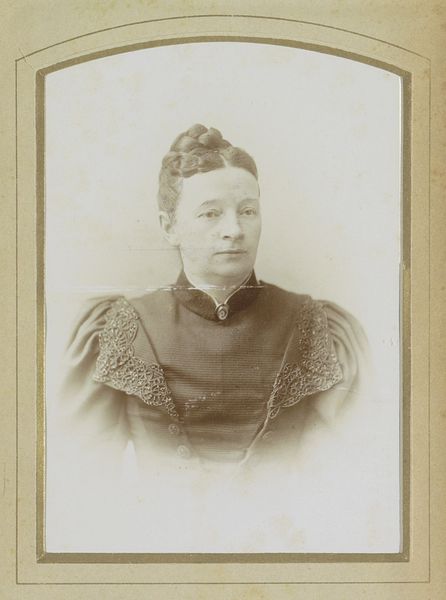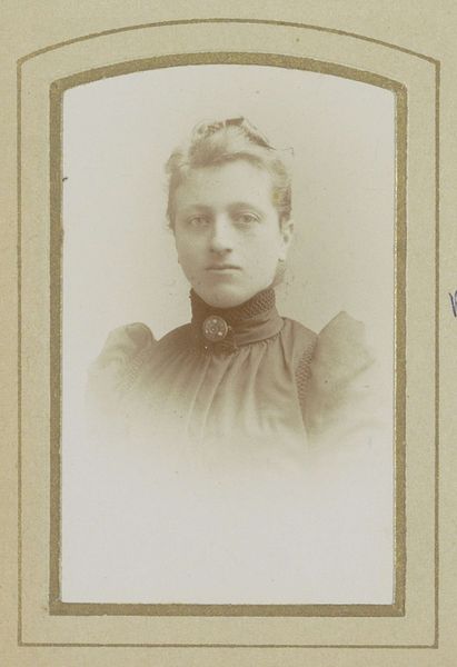 Editor: Here we have "Portret van Heleen Waller," a photographic portrait dating from between 1892 and 1897 by Koene & Büttinghausen, housed in the Rijksmuseum. It strikes me as such a formally composed image, almost austere. What do you see when you look at it? Curator: This portrait, while seemingly straightforward, sits within a fascinating historical context. The rise of photography democratized portraiture, shifting it from the realm of the wealthy to a wider segment of society. It reflects changing social values and aspirations of the rising middle class in the Netherlands during the late 19th century. Think about the studios themselves – what kind of experience do you think they were crafting for their customers? Editor: So, beyond just documenting someone’s appearance, a photo like this would also represent access to certain social circles, perhaps even aspirational identity building. Curator: Exactly. The pose, the dress – everything is carefully constructed to project a certain image. Also, consider how the Rijksmuseum's collecting practices shape the understanding of photography as art, elevating specific images and narratives above others. Why this image and not another? What statements are we making when we show this photograph? Editor: That's a really interesting point. It's easy to see a portrait and not think about the layers of selection and interpretation involved in even putting it on display. I hadn't thought about that at all. Curator: It is always good to think of who gets remembered, why, and who does the remembering. This image, seemingly simple, can open up a broader discussion of how photography was used, collected, and how museums play a role in shaping cultural memory. Editor: Absolutely, seeing this photo through a socio-historical lens has made me rethink how I approach portraiture. It's not just about who is in the frame, but the power dynamics at play and the messages being communicated.