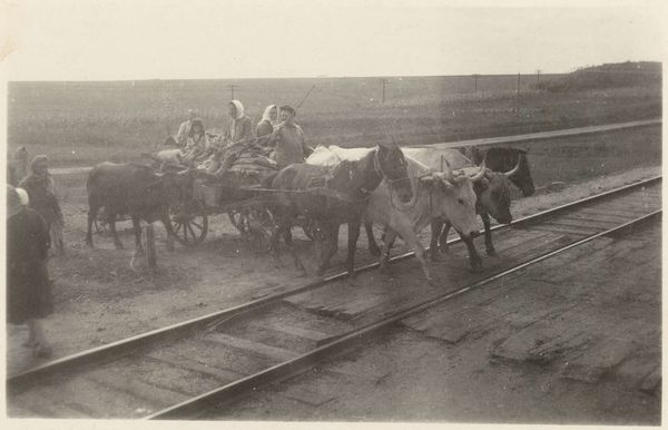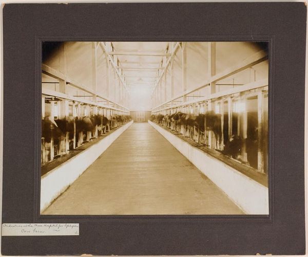 Curator: This evocative photograph, taken around 1908 by Woodhead Studio, is titled "Defectives, Epileptics: United States. Massachusetts. Palmer. State Hospital for Epileptics: Cow barn." Editor: It's incredibly still, almost like a tableau vivant. The light seems to press down on the scene, making it feel intimate yet oddly detached. Curator: The image depicts a man milking a cow in what appears to be a barn at the Palmer State Hospital for Epileptics in Massachusetts. It’s a stark document of a time when institutions segregated and controlled those deemed "defective." Editor: The repetitive lines of the cows almost create a visual metaphor for the regimentation of institutional life, don’t you think? There’s a palpable sense of isolation. Curator: Indeed. It's a visual record of social control and eugenics policies, a stark reminder of a dark chapter in American history. The clinical gaze is almost unbearable. Editor: It’s disturbing how matter-of-fact it is. And yet, in that single moment of man and beast, there’s a touch of tenderness. A strange juxtaposition. Curator: Absolutely, and it’s that tension that makes it so compelling, so difficult to look away from. It challenges us to confront uncomfortable truths. Editor: It forces us to consider the stories behind the faces we don't see, and the systems that defined their lives.