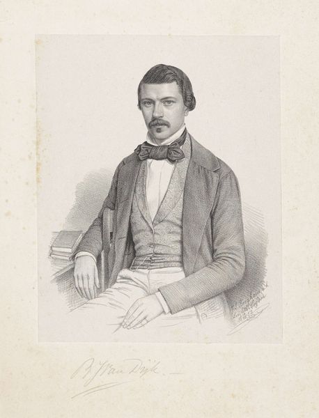 This engraving presents a portrait of an unknown man, possibly J. van Slingelandt, crafted by Johann Peter Berghaus. Observe his assured posture and gaze; the slight smirk plays upon the edge of his lips. The man's attire speaks to the rising bourgeoisie and the fashions they chose to emulate. The clothing mirrors the dark sobriety seen in portraits of merchants since the Renaissance. Look closely at his hand, and the object he holds resembles a rolled-up parchment. What could have been written upon it? Might it be a business contract or perhaps a love letter? Such details carry echoes of similar portraits across time. Consider the merchants depicted by Holbein the Younger. The man's gaze holds a certain intensity, a silent challenge to the viewer. These visual motifs and gestures carry cultural memory. They resurface, evolve, and take on new meanings across different historical contexts.
