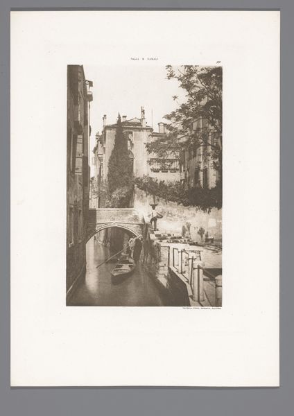 Curator: This photograph by George Hendrik Breitner, taken around 1905, captures a view of the Baanbrugsteeg in Amsterdam. What’s your first impression of it? Editor: It feels incredibly intimate, like a secret peek into another time. It's somber and beautiful; the soft greyscale palette almost romanticizes the mundane. You can practically feel the wet cobblestones beneath your feet. Curator: Indeed. Breitner, often associated with Dutch Impressionism, really aimed to capture the energy of the city in its most unvarnished form. He wasn’t afraid to depict Amsterdam as it was, grit and all. This image isn’t a picturesque postcard. It reflects daily life. It challenges that romanticization you mentioned by showing a stark, somewhat gloomy, reality of Amsterdam's working-class areas. Editor: Absolutely. Look at the way he uses light – or, more accurately, the lack of it – to create a sense of enclosure and anonymity. The figures are blurred, almost ghosts in the urban landscape, swallowed by the architecture around them. It speaks to the invisibility of marginalized populations even within bustling cityscapes. The steep angle of the street adds to that feeling, making the architecture almost suffocating, weighing down the figures that are on the road below. Curator: Breitner, also known as the 'painter of Amsterdam', extensively documented city life using photography as studies for his paintings. He saw the camera as a tool, a visual notepad, allowing him to freeze a moment, a specific atmosphere he could then translate onto canvas later. Do you feel that using photographs brings his paintings something different to those that would normally fall under the umbrella of impressionism? Editor: Certainly, the photographic element lends a raw authenticity and immediacy you might not always find in purely painted impressionistic works. This image functions as more than just art, becoming a document of social and architectural history. But more importantly, by focusing on such candid snapshots of everyday life, Breitner allows us to meditate on the urban experience, the experience of seeing and being seen – or rather, unnoticed – within the anonymity of a burgeoning metropolis. Curator: It offers a strangely timeless vision, even a century later. These individuals, shrouded by the mists and anonymity of the alley, become representative of anyone simply going through their daily life in Amsterdam's winding alleyways. Editor: Absolutely. Thank you.