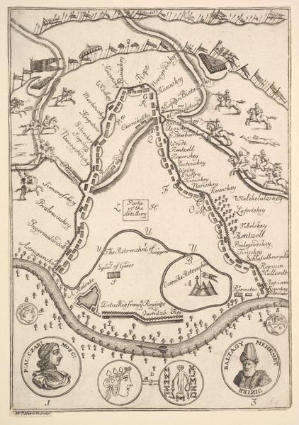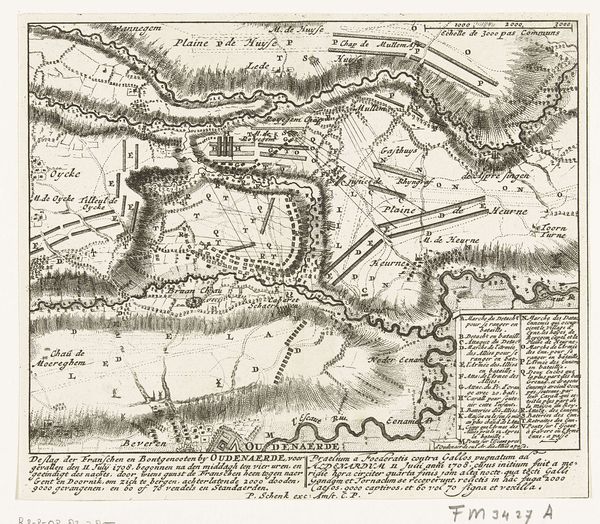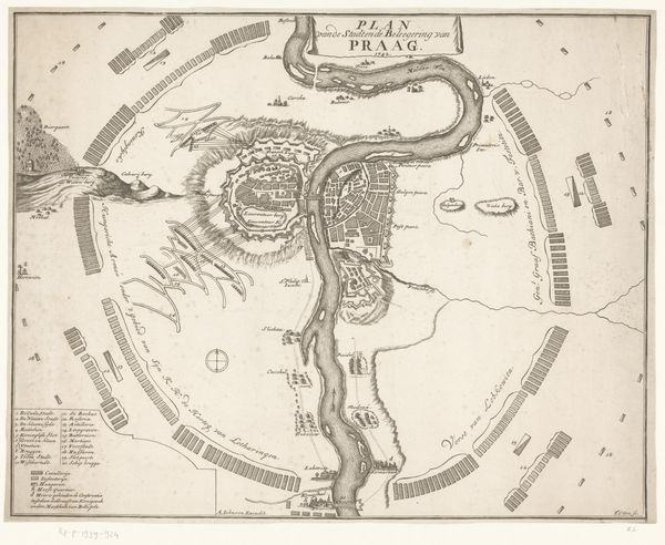 Curator: So, we have Jan van Jagen's "Kaart van Jerusalem," created in 1790 using ink and engraving. It strikes me as incredibly precise and detailed. What do you see here? Editor: It feels almost like an architectural blueprint, but also… artistic. I’m intrigued by how it blends cartography with what appears to be artistic rendering. It looks very intentional. I wonder, how might we approach interpreting this piece? Curator: Let’s consider the materials themselves: ink, paper, the engraving process. Each stage involves labor. How does the act of painstakingly recreating a city change its representation compared to, say, a modern satellite image? We can also think about accessibility - how did prints make knowledge like this accessible in the 18th century? Who could afford them, and who did this knowledge serve? Editor: That's interesting, the production value versus access. The act of hand-engraving is so laborious; it speaks to a different value system surrounding information. Curator: Precisely! And think about the social context: what did owning a map of Jerusalem signify at the time? Was it about religious pilgrimage, political aspiration, or simply intellectual curiosity fuelled by a colonialist world-view? And also about craftsmanship versus utility. Can we consider the engraver an artist in the same way we consider, for example, a painter an artist? What defines artistic creation here? Editor: I hadn’t really considered that! I see the craftsmanship more clearly now, especially regarding this specific social and historical lens. Curator: Reflecting on the labour involved truly underscores how maps transcend being mere geographical tools. They are complex artefacts. Editor: Absolutely. I'm definitely walking away seeing this print and others like it through a different, more material lens now. Thanks!