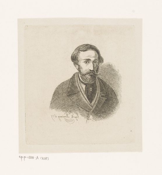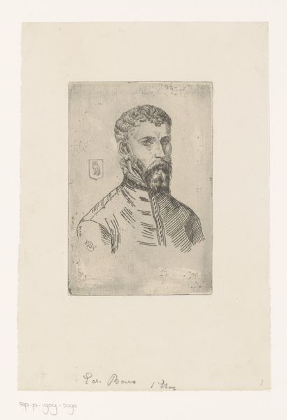 Edgar Alfred Baes created this intimate portrait of Herri met de Bles using etching, a printmaking technique known for its fine lines and detailed textures. The monochromatic palette emphasizes the formal qualities of line and shading, creating a somber and contemplative mood. Baes skillfully employs hatching and cross-hatching to model the face and clothing, giving depth and volume to the figure. Notice the intricate detail in the beard and hair, achieved through the precise control of the etching needle. The artist subtly contrasts the smooth areas of the face with the textured fabric of the coat, drawing attention to the materiality of the print itself. This portrait, with its emphasis on the tactile quality of etched lines, invites us to consider how the medium shapes our perception of the subject. It is a testament to the artist's technical skill and his ability to convey character and presence through purely formal means.