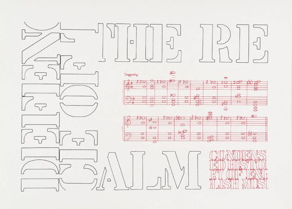 Editor: This is *Winterreise-Wasserfluth* by Tim Rollins and K.O.S., created in 1989. It’s a print featuring musical notation. What I find immediately striking is its ethereal quality, almost ghostly, with its delicate composition. What do you see in this piece? Curator: I see a compelling investigation into the structural elements of visual and musical language. Note how the artists use the existing musical score as a foundation, a rigid framework, then subvert its intended purpose. The faintness of the printed notes invites us to consider the very essence of representation. The tonal variations and the slight "yellowing" adds depth to its pale form. It seems, this challenges the conventional ideas around artistic authorship. How do you react to the artists decision to work in a group? Editor: I see what you mean, its like they're questioning the idea of the singular artistic genius through their collaboration but also in the very subtle manipulation of the base musical text. What meaning do you derive from it? Curator: In terms of semantics, the group dynamic brings forth a sense of collective consciousness. However, aesthetically, I am captivated by the tonal and soft colors used in it. Do you see that this artwork is stripped down to bare bones of visual art- line, tone and texture, devoid of emotional impact? Editor: Now that you mention it, the emotional component feels very subtle, secondary even to the formal composition of lines and shapes on the print. Curator: Exactly. The focus is less on conveying the *content* of the song and more on dissecting the underlying structure and presenting that as its primary subject matter. Through the semiotics and tonal distribution in this work, Rollins and K.O.S. successfully provoke us to consider how much context influences our interpretations, and it shifts based on presentation style. Editor: That’s given me a completely new appreciation for how form dictates our interaction with this piece. Thank you! Curator: It was a pleasure to observe with you. This exploration into the underlying mechanics is what elevates this artwork above a mere copy.