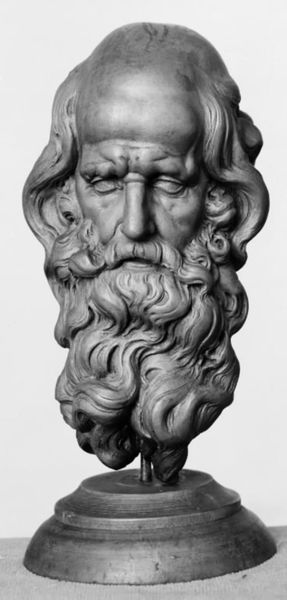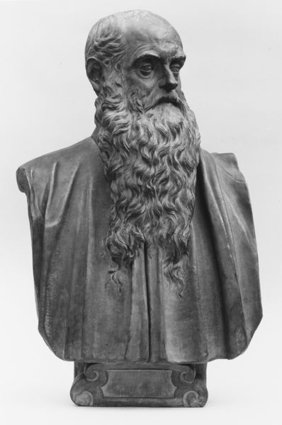 Editor: Here we have Joseph Coplans’ "Portrait of George Bernard Shaw", a bronze sculpture currently residing at the Harvard Art Museums. The texture of the bronze gives it such a weighty and somber feel. What do you see in this piece? Curator: The interplay of light and shadow across the sculpted surface is crucial. Notice how Coplans uses deep undercuts and textured surfaces to create a dynamic chiaroscuro. This enhances the volume and presence of the bust. Editor: That's a great observation. So the artist's manipulation of form is key to its impact? Curator: Precisely. The formal elements—the mass, the texture, the light—are the primary conveyors of meaning here, independent of any biographical reading. Editor: I see it now! Focusing on those elements really changes how I understand the sculpture. Curator: Indeed, a close examination of form can reveal much about an artwork's intrinsic qualities.