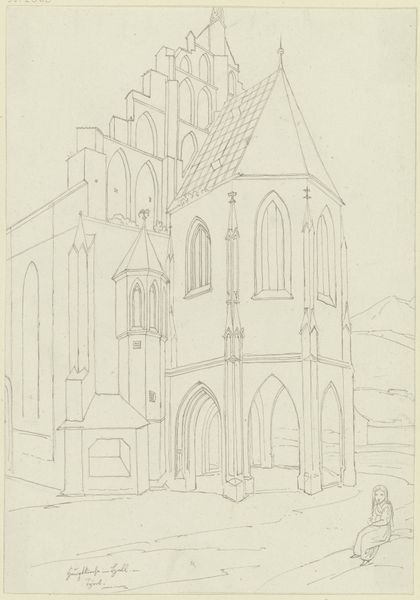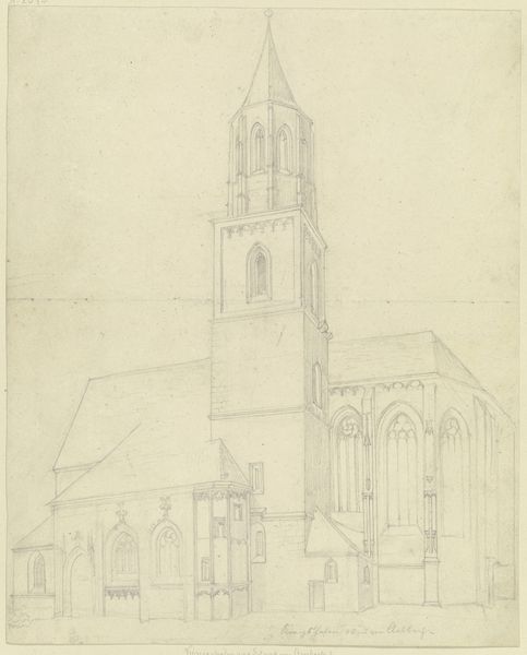 Karl Ballenberger made this drawing of Heilbronn Abbey using graphite on paper. The material and process are straightforward, yet worth considering. Graphite pencils, even in the early 19th century when this was made, were relatively inexpensive and easily portable, making them ideal for sketching architectural subjects *en plein air*. Consider how the qualities of graphite – its ability to create fine, precise lines and subtle gradations of tone – influence the image. Ballenberger uses these qualities to capture the architectural details of the Abbey, from the pointed arches to the rose window. But it’s not just about accuracy. The medium also allows for a certain lightness and transparency, lending the image an ethereal quality. The artist's hand is evident in every line, reminding us of the direct connection between the artist and the subject. Ultimately, this drawing exemplifies how even the simplest materials, combined with skilled technique, can yield profound aesthetic results, and can offer valuable insights into the cultural and social context in which it was created.