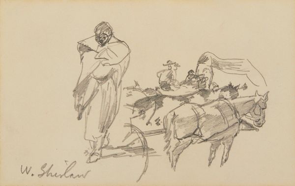 Walter Shirlaw created this sketch on an Indian Reservation using graphite on paper. Here, the figures wrapped in blankets offer a powerful visual. These cloaked figures echo images of draped figures found across cultures and centuries. Think of the ancient Roman senators in their togas, or even the veiled Madonnas in Renaissance paintings. The drapery conceals and reveals. In this sketch, it speaks to a kind of cultural entrenchment but also perhaps vulnerability. Are they shielding themselves from the harsh environment, or from the gaze of the outsider? The blanket becomes a symbol of identity, of cultural continuity, but also of a certain imposed invisibility. The very act of wrapping oneself can be seen as a protective gesture, laden with complex emotional and psychological weight. Observe how the draped figure recurs throughout art history, perpetually shifting and adapting, carrying echoes of past meanings into new contexts.