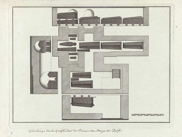 Curator: This etching by Giovanni Battista Piranesi, created between 1756 and 1757, presents architectural studies of the Mausoleum of Caecilia Metella. The print offers multiple perspectives on this ancient Roman structure. Editor: My initial response is of stark, geometric precision. The print isolates different views—plan, elevation, section—revealing a deep understanding of form and its inherent logic. The absence of color accentuates the line work and spatial relationships, rendering the monument in a cerebral, almost diagrammatic light. Curator: Indeed. Piranesi’s approach reflects the prevailing Neoclassical interest in empirical accuracy and measured documentation of antiquity. He isn't simply depicting a ruin; he’s dissecting its constituent parts, aiming to provide a scientifically informed representation. This exemplifies how 18th-century artists engaged with the past, emphasizing reason and objectivity in their interpretation. Editor: Yet there's also an artistic license at play. Note the emphasis on light and shadow, creating depth and volume within the precisely rendered lines. Piranesi isn't merely an architectural draughtsman; he uses etching techniques to invest the structures with a sense of gravity. Also, observe how he frames these diagrams; they create an overall sense of drama despite the muted tonality. Curator: Quite true. We see a romantic vision underpinning Piranesi’s engagement with classical ruins. Consider the mausoleum's context: originally constructed along the Appian Way, a major Roman thoroughfare, it acted not only as a burial place but as a symbolic statement of power and lineage. Piranesi invites us to imagine it within the landscape of memory and imperial ambition. Editor: And his work invites questions about reproduction and the aesthetic value. The rigorous order imposed on a ruin is itself an act of control, a strategy to contain a potentially overwhelming confrontation with history. Also, Piranesi’s strategic arrangements force a reevaluation of what architecture "means" within the sphere of visual culture. Curator: I find that it evokes a dialogue between meticulous analysis and subjective response—highlighting the ever-present tension between historical study and artistic interpretation. It gives us some thoughts to consider. Editor: Absolutely. A valuable lesson from an evocative print.