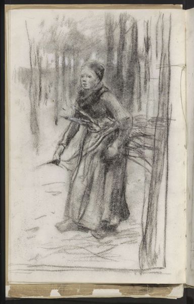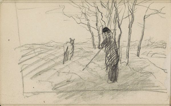 Jean-François Millet created this drawing, "Schaapherderin, leunend op een stok," using black chalk. Millet, who was deeply influenced by his peasant roots, often depicted rural life in his art. During the 19th century in France, there was a growing interest in representing the lives of the working class. Millet's focus on the dignity of labor set him apart. Here, we see a shepherdess, a young woman, holding her staff in a field with her sheep. The landscape seems to reflect the solitude and hardships of rural life. Millet once said, "I am a peasant, and I will paint peasant life." This wasn't just about visual representation; it was about valuing the lives and experiences of those often overlooked by mainstream society. Her posture and simple clothing speak to a life of hard work and resilience. While some artists of his time focused on idealized visions, Millet chose to depict the everyday realities of the working class. He invites us to consider the stories and struggles of individuals whose labor sustains us all.