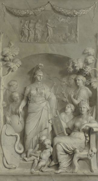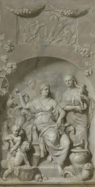 Jurriaan Andriessen created this painted wall hanging with a bacchante, or female follower of Bacchus, the Roman god of wine, sometime in the 18th century. The subject matter and its illusionistic treatment as a marble sculpture are typical of the period. Painted for a Dutch canal house, this work reflects the fashion for classical motifs in interior decoration at the time. The dancing figures above the main scene and the bacchante herself refer to the pleasures of wine and revelry. But they also speak to the values of the Dutch elite, who associated themselves with the refinement and learning of classical antiquity. To fully understand this artwork, we need to consider its institutional context. Who was commissioning these kinds of works and why? What was the social role of art in the Netherlands at this time? By consulting period documents, such as estate inventories, we can learn more about how art functioned in the lives of those who created and consumed it.