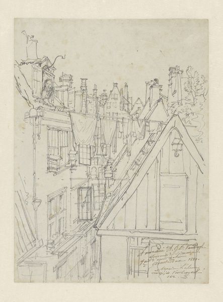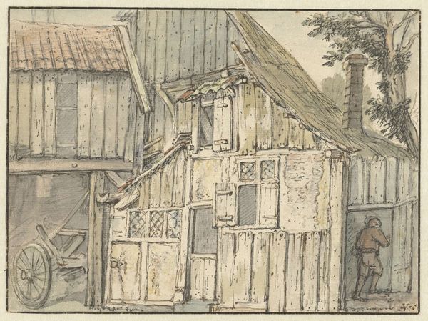 Editor: This is "Boerenhuis," a drawing made with ink by Isaac van Ostade sometime between 1631 and 1649. It depicts a rural house, and I'm immediately struck by its slightly crooked, almost whimsical quality. What do you see in this piece, considering its place in art history? Curator: As a historian, I find this drawing fascinating for how it reflects the social landscape of the Dutch Golden Age. These genre scenes of everyday life, seemingly simple, were carefully constructed. This aesthetic, in part, represents the Dutch burghers embracing a distinct cultural identity after their independence from Spain. Have you considered the possible audiences of similar pieces? Editor: I haven't really considered the audience much beyond those of us looking at it in a museum today. You mean who would have viewed it back then? Curator: Precisely. Who was buying and collecting art like this? Think about the burgeoning middle class, the merchants, the individuals building their wealth through trade and commerce. What did they value? What kind of imagery might appeal to them? Editor: So, scenes like this validated their everyday experiences? Showing the normalcy and even beauty of rural life and hard work? Almost like a… a celebration of their values? Curator: Exactly! The art market in the Dutch Golden Age wasn’t solely for the aristocracy; a growing middle class sought to adorn their homes with images that mirrored their own lives and affirmed their values. And furthermore, where do you think similar scenes were commonly displayed, and why? Editor: Probably in their homes? Because, yes, it reflects how their lives are, they were very proud to have grown wealth on their own, I can totally see this on the house's wall! So it is like today people display photos from vacations, it shows the things they cherish! Curator: A very sharp comparison! It shows the democratization of art consumption, aligning imagery to reflect evolving socio-political forces, making public the idea of an individual's cherished values! Editor: That's fascinating! It makes me appreciate how art can reflect social values beyond just aesthetic appeal. Curator: Indeed. It reminds us that art always exists within a web of cultural and historical forces. Looking beyond aesthetics allows us to see the intricate dance between imagery and its public reception.