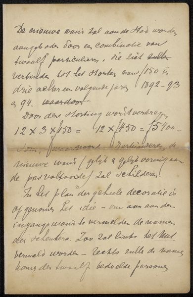 Curator: The work before us is titled "Brief aan Jan Veth," possibly dating back to 1894. It's attributed to Antoon Derkinderen and seems to be a photograph of an ink drawing on paper. Editor: It appears intensely personal—the cramped handwriting lends an immediacy that is incredibly palpable, like stumbling across someone's private thoughts. Curator: Indeed, the very medium speaks to its intimacy. It’s a letter, photography reproducing the physical note. I'm curious about the emotional context for those reading it in its time. Do you sense social pressure here? Editor: Absolutely, though subtle. Note the closing line “Je niet?" which could be translated as "Isn't it?" indicating perhaps that Derkinderen believed something the recipient may have felt differently about. So perhaps he is gently but surely pushing an argument for influence? It's easy to imagine its potential use as material for public debates on artistic and cultural directions of the time. Curator: I agree, this visual exchange offers a fascinating entry point into the dialogue amongst Dutch artists at the turn of the century. It has the tone of someone trying to convey that his side should not be abandoned. Editor: The immediacy is powerful. Considering it through a modern lens, one can find its composition—its handwritten appearance—mirrors visual language that may have once been associated strictly with letters, and which might even trigger familiar emotions in viewers today, even if only through memory and cultural association. It gives the message added heft. Curator: The simple fact that this private missive now hangs in a museum fundamentally alters its intended impact, amplifying voices in public, just as it now speaks to us. Editor: Exactly! I walk away sensing that even something as vulnerable and candid as this can find renewed social significance through time.