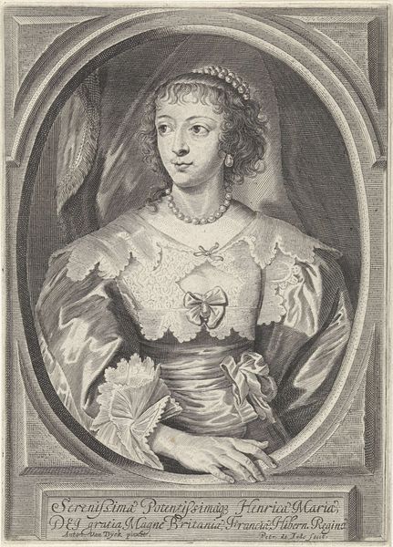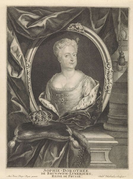 Jacobus Buys created this portrait of Amalia van Solms with pen and gray ink, brush, and gray wash, sometime in the 18th century. The portrait presents a woman of obvious wealth and status, framed within an oval border. The architectural base underneath suggests a memorial monument, perhaps indicating her posthumous status, and emphasizes the enduring power of the House of Orange. Made in the Netherlands during the 1700s, this portrait reflects the cultural obsession with dynastic power that dominated European social structures. The meticulous detail in the rendering of her lace collar, pearl necklace, and jeweled broach, all speak to the importance of aristocratic status markers within Dutch society. This piece is now held in the Rijksmuseum, a national institution created to safeguard important cultural artifacts, thus cementing the historical legacy of Amalia van Solms. Careful art historical research helps us understand how portraits like this were used to build and maintain social hierarchies. By consulting sources such as archival records and period writings, we can better understand the social conditions that shaped the production and reception of this image.
