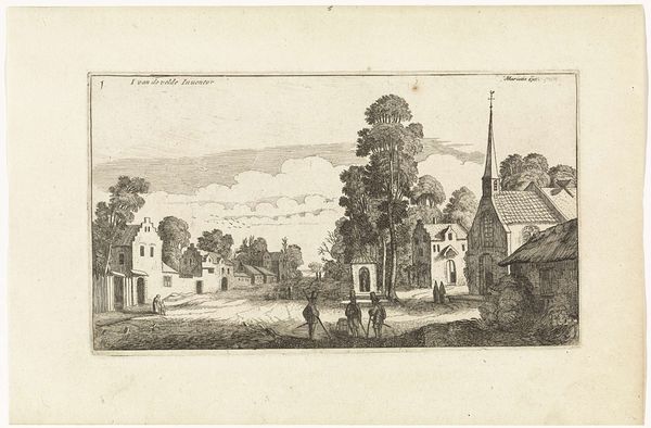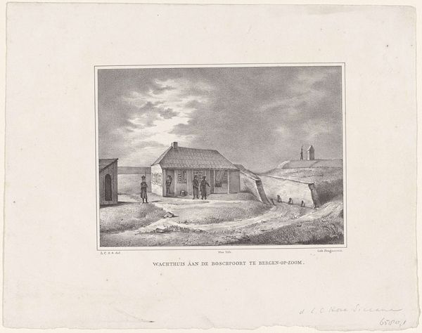 Editor: This engraving from 1842 by H. Gerard is titled "Ruïne van de hoeve van Hougoumont." The print portrays a scene of what appears to be a ruined farm, and there’s a somber feeling about the composition. What strikes me is the use of light and shadow to create such a poignant atmosphere. What do you see in this piece, from an art expert's perspective? Curator: Focusing on the intrinsic elements, the strength of this work lies in its tonal range and controlled linework. Observe how Gerard utilizes the hatching and cross-hatching techniques to model form and suggest depth, primarily creating dark versus light to construct an entire pictorial space from effectively one shade. What semiotic readings can we extract? Editor: Well, the ruins are definitely symbolic. The figures are so small. How would we go about interpreting that from a structuralist point of view? Curator: The deliberate scale discrepancy directs the eye towards the architectural decay, making the human figures subservient to the overarching theme of ruin and, perhaps, historical weight. Ask yourself how each structure is placed to best illustrate their relationship. Editor: That's a clever way to look at how proportion influences the narrative. Thanks for breaking it down through formalism; now I understand it better. Curator: Considering artworks this way shows us the underlying logic in visual representations. Hopefully, you have learned how vital close visual analysis and application of structuralist theory can be when deciphering art!