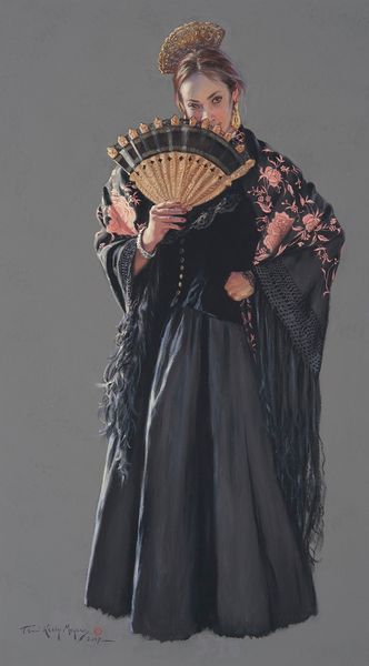 Editor: So, this is "Karl I" from 1828, by Josef Kriehuber. The detail in the robes is amazing! It’s a striking portrait but almost feels like it belongs in a history book of costumes. How do you see this work beyond its historical context? Curator: Oh, this isn’t just fashion plates, darling. It whispers of yearning for a golden age, doesn’t it? Kriehuber captures the *idea* of Karl, wrapped in Romanticism's hazy glow. I mean, the heavy ornamentation practically drowns the figure, like burying reality in layers of aspiration and longing for past glories. Does it make you think of anything else? Editor: A theatrical production, maybe? All the world's a stage? Curator: Precisely! This Karl is staged, costumed for a part. Consider the colors – that jewel-toned cloak shouting against the soft green, it’s practically operatic! I find myself asking, "Who is *this* Karl? Is this a leader, or a legend being crafted?" Editor: Interesting point about a constructed legend. Now, the work almost feels like propaganda or an endorsement from an ancient PR firm. Curator: Yes, there’s an air of aspiration, but with a gentle melancholic acceptance of its unobtainable perfection. Is it persuasive, though? Perhaps a better question is: does it need to be? Editor: Good food for thought, how it presents something almost too good to be true, or beyond reach! Curator: Art doesn’t have to scream the truth. Sometimes, the most resonant truths whisper through layers of embroidery, darling. I shall consider all that splendor differently now!