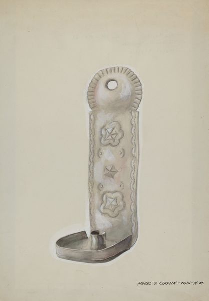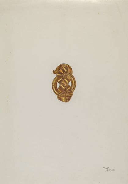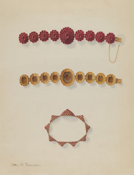 Editor: This is Edward White's "Locket," from around 1937. It’s a drawing, seemingly a design, showcasing a miniature piece of jewelry. The detail is quite ornate, and there's a kind of antiquated charm to the design that really grabs me. What do you see in this piece in terms of its historical context? Curator: This locket drawing is interesting because it offers a glimpse into the applied arts of the late 1930s. Consider the context: the Great Depression is still impacting design and consumption, yet we see a yearning for luxury and personalized items. The miniature quality and detail indicate a certain craftsmanship and investment of time, but this is just a design – possibly a marketing tool. It also begs the question: Who was this locket intended for? What socio-economic group would be the target for such jewelry, and how does that impact its style? Editor: That makes me think about mass production versus bespoke design during that time. The drawing almost suggests something exclusive, but was there a tension there, between wanting unique pieces and affordability? Curator: Precisely. And what is the public role of such an image? Was it an aspiration? A symbol of social mobility or a reminder of existing social structures? Editor: So, it’s not just about the beauty of the design itself, but about the social messages embedded in it, and how those messages would have been read and understood in the late 1930s. I hadn't considered the economic and social implications of a jewelry design like this. Curator: Exactly. By exploring those implications, we gain a richer understanding not only of the artwork itself but also of the complex society that produced it and consumed its imagery. I find that quite fascinating, don't you? Editor: I absolutely agree. It changes my perception of it completely.