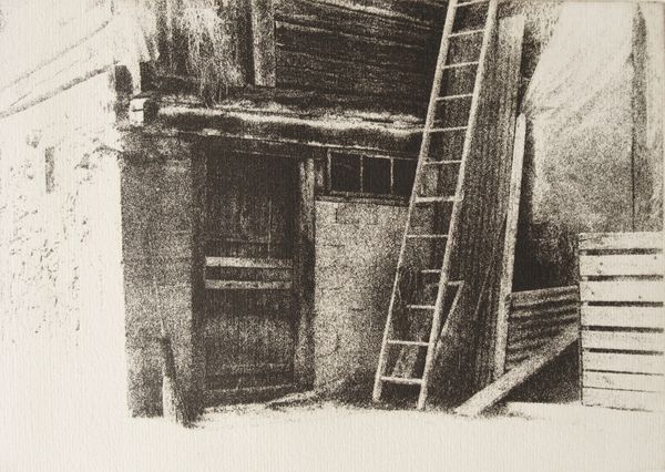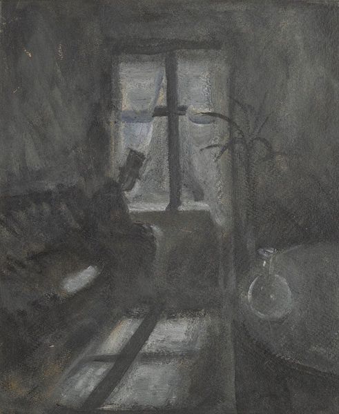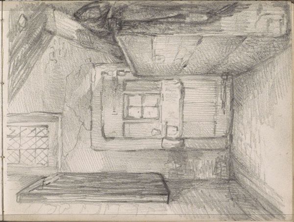 Editor: So, here we have William Valentine Schevill's "Sketch of an Interior," housed at the Harvard Art Museums. It's a simple drawing, but the open door is compelling. What do you make of this work? Curator: Well, consider the historical context. Interior scenes often represent domesticity and privacy, but an open door also suggests invitation or transition. How might this imagery have resonated with audiences at the time, given shifting social norms and the public role of art? Editor: That’s interesting! I hadn't considered how the symbolism might reflect broader social changes. Curator: Indeed. It prompts us to think about whose "interior" this is, and who is being invited in, both literally and figuratively. Editor: I see, thank you!