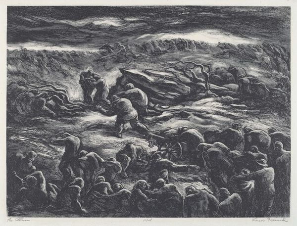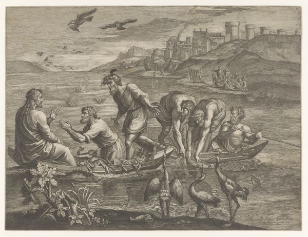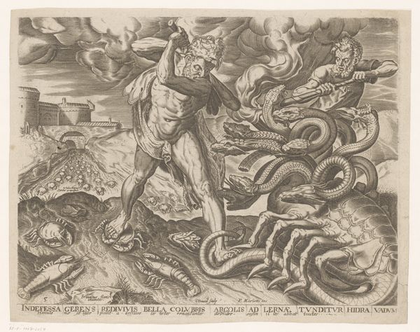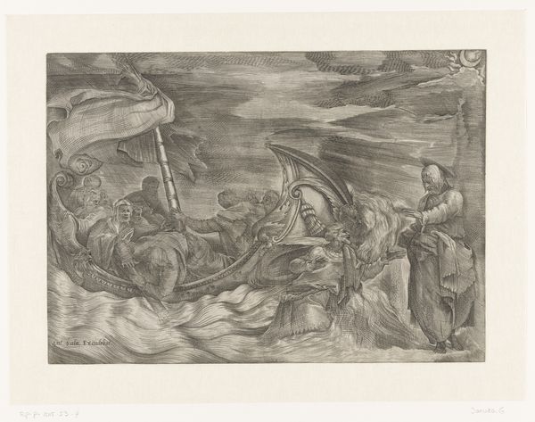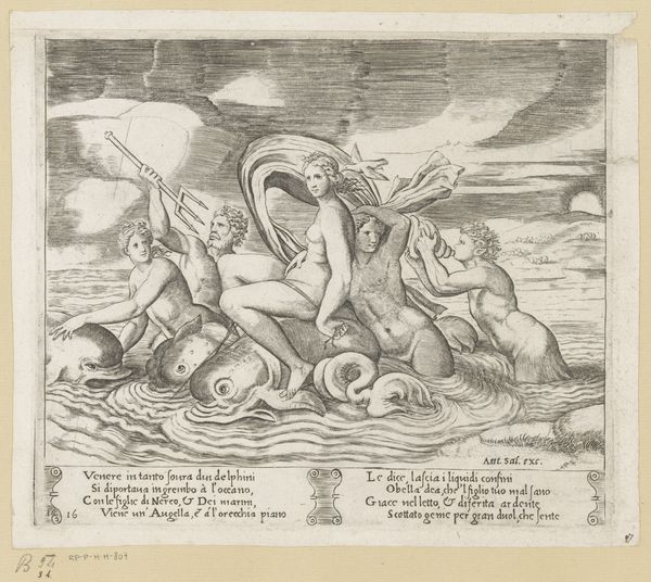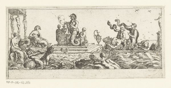 Editor: This is "Water," a pen drawing made sometime between 1565 and 1630 by Antonio Tempesta. It's currently housed in the Rijksmuseum. The chaotic composition and the mythical figures create a really unsettling feeling, but what’s really going on here? How do you interpret this work? Curator: This piece, to me, speaks volumes about the historical anxieties surrounding natural resources, particularly water, and how they were visualized during a period of burgeoning globalization and maritime exploration. Tempesta created this striking representation of "Water", it can be argued that this engraving, brimming with marine deities and monstrous sea creatures, isn't just an illustration but a reflection of the 16th and 17th century European worldview. What do you notice about the dominance of the human figure, in relation to the monstrous sea creatures? Editor: Well, they seem to be controlling, almost taming the beasts, channeling water and directing its power. So, is this maybe about man's control over nature? Curator: Precisely. It underscores the period’s colonial ambitions and the intertwined exploitation of both natural resources and the bodies of marginalized peoples, don’t you think? Tempesta, consciously or unconsciously, depicted an emerging ideology where control over resources translated to power and domination. Editor: That makes so much sense when you think about the historical context. It’s not just a mythical scene; it’s a statement about power. Curator: Exactly. By engaging with the imagery through a lens of critical theory, we unveil layers of meaning far beyond the immediate visual spectacle. Editor: I hadn't considered that! I will now look at 16th-century art in a new way. Thank you.