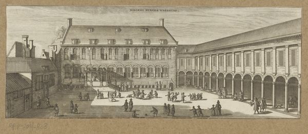 This print, “Beurs,” was made by Johann David Schleuen around the mid-18th century, using etching on paper. The printmaking process involves coating a metal plate with a waxy, acid-resistant substance, then scratching an image into it. The plate is dipped in acid, which bites away the exposed lines. Finally, ink is applied and the plate is pressed onto paper, transferring the image. This technique allowed for relatively easy reproduction and dissemination of images, making them accessible to a wider audience. Looking closely, you can see the linear quality of the etching. The image depicts a bustling scene, likely a merchant exchange. The quality of line determines the appearance of the artwork as it provides a tremendous amount of detail. The architecture's imposing presence speaks to the importance of trade and commerce in society at the time. The very act of printing and distributing images like these was itself part of the burgeoning capitalist system. It allowed for the exchange of information, ideas, and representations of wealth. By considering the material and process of printmaking, we can see how this image is deeply embedded in the economic and social context of its time, connecting artistic practice to wider issues of labor and consumption.