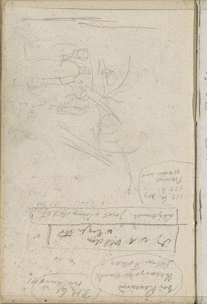 Editor: So, here we have "Paard," or "Horse," a pencil and graphite drawing by George Hendrik Breitner, dated somewhere between 1902 and 1914. It's currently held at the Rijksmuseum. What immediately strikes me is how raw and immediate it feels, almost like a fleeting impression captured on the page. What do you see in this piece? Curator: This isn't just a drawing of a horse, but an exploration of cultural memory. Breitner, though associated with Impressionism, uses the horse to evoke something deeper than a simple depiction of urban life. In many cultures, the horse is a symbol of power, freedom, and even nobility. Notice how Breitner presents the animal; its downwards direction changes how we should look at this subject, subverting some expectations for its presence. Editor: So, are you suggesting Breitner is consciously playing with the symbolic weight of the horse? The loose lines make it feel so unfinished, so modern. Curator: Precisely. While embracing modern techniques, Breitner is also hinting at the loaded history the image of a horse carries. The quick strokes almost serve as a way to suggest, this figure is important but it may have been forgotten over time, relegated into urban detritus that is written around the subject. He's capturing a moment, yes, but also acknowledging the enduring symbolic presence of the animal in our collective consciousness. What stories do you think it wants to reveal? Editor: I never thought about it that way before. I was so focused on the impressionistic style that I missed the potential cultural commentary. Curator: It is indeed thought-provoking once one connects this kind of symbol and emotional image.