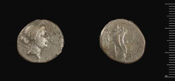 Editor: This is a Denarius coin of Septimius Severus at the Harvard Art Museums, depicting what looks like an elephant. What significance do you see in the imagery presented? Curator: The elephant, particularly on Roman coinage, carries a powerful symbolic weight. It evokes ideas of exotic conquest, military might, and imperial reach. Think of Hannibal crossing the Alps. Editor: So, the elephant symbolizes power and domination in this context? Curator: Precisely. It’s a visual echo of Rome’s expanding influence, a deliberate attempt to link Septimius Severus with notions of strength, exoticism and perhaps even a touch of the divine, given the elephant's associations in some cultures. What feelings does it stir in you? Editor: I see. It’s fascinating how a single image can hold so much cultural and historical meaning. Thanks!