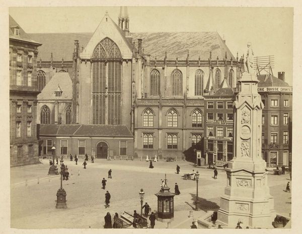 Editor: So, here we have Louis Antoine Pamard's "Place du Louvre in Paris with the Église Saint-Germain-l'Auxerrois," a photograph dating from around 1880 to 1900. It’s quite striking, almost like a stage set, but very still and serene. What jumps out at you when you look at it? Curator: It evokes a powerful sense of history, doesn't it? The church of Saint-Germain-l'Auxerrois, fronting the Louvre, was once the parish church of the French royal family. Seeing them together is really meaningful; how would you say that shapes our perception of the image? Editor: I hadn't thought of that. Knowing it was *their* church changes things; makes it feel more… intimate, in a strange way, considering the grand scale of the architecture. I mean, with the tower there front and center. Curator: Precisely. And consider the photographic medium. Photography, especially at this time, had a documentary power, freezing moments and preserving them, yes. But the architecture carries deeper resonance. The pointed arches, the rose window...it’s full of sacred geometry and a tangible connection to cultural memory. Does any of that show how places become characters, or even reliquaries? Editor: So, the architecture isn't just backdrop, it's acting like a memory device? Is that a fair analogy? Like it carries symbolic weight beyond just being old buildings. Curator: Exactly. These places accrue stories. They witness historical dramas, and those events get embedded in the stone, into the very fabric of their construction. The photographer is also capturing that accumulated experience. What remains interesting, even paradoxical, is how it invites modern consumption. Editor: I guess, thinking about it, that’s why the image feels both still and alive; still because it captures a frozen moment, but alive with the weight of everything that has occurred there. Thanks, that was very illuminating. Curator: And for me, that interplay you've noted shows how visual memory extends its impact far into the future.