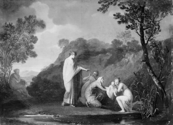 This is Karl Bodmer's "Capture of the Daughters of D. Boone and Callaway by the Indians." The artwork's monochrome palette and dramatic composition immediately evoke a sense of foreboding. Bodmer masterfully employs contrast, casting the women in the boat in light against the dark, dense thicket where the Indians lurk, heightening the sense of danger and vulnerability. The composition is structured to draw the eye from the distressed figures in the boat, emphasizing the encroaching threat from the shadows. The artist uses the formal elements of light, shadow, and line to construct a scene where the known is invaded by the unknown, challenging fixed notions of safety and wilderness. The piece serves as a visual text, inviting us to reflect on cultural encounters, and the anxieties of frontier life. The strategic deployment of darkness around the periphery, and the positioning of figures within the frame, underscore themes of invasion and disruption.