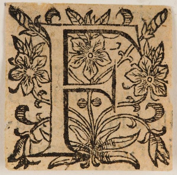 Editor: So, this is "Letter I" by an anonymous artist. It's a small woodcut print, and the floral design woven around the letter feels so delicate, even though it's in stark black and white. What captures your attention in this piece? Curator: It's a tiny universe, isn't it? I imagine a monk, perhaps, painstakingly carving this letter, each leaf a prayer, each flower a meditation. The anonymity allows us to project our own stories onto it. Does it feel austere or abundant to you? Editor: I think abundant! The flowers burst out. Does the floral design have any special significance? Curator: Perhaps! It's hard to say definitively, but flowers often symbolized various virtues or concepts in medieval and Renaissance art. Maybe the artist was subtly embedding a message. What kind of message do you imagine? Editor: Hmm, maybe perseverance? The way the vines climb... Curator: I love that. It reminds me that even the smallest creation can hold the biggest ideas. Editor: Me too. It’s amazing to think of the stories hidden within something so small.