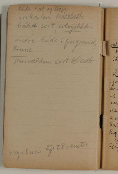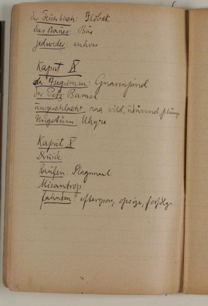 Curator: The materiality of this page feels immediately intimate—like we've stumbled upon something not intended for public viewing. It's like eavesdropping on a conversation. Editor: You're right, it’s exceptionally immediate. What we're seeing here is a page from "Alf Petersens gloser og bemaerkninger til Atta Troll," dating from 1930 to 1938, by Niels Larsen Stevns. The museum tells us it’s a mixed media work using drawing, textile and paper. Curator: Mixed media, you say? The texture makes me wonder how the textile factors in. Is it part of the binding or perhaps backing for the paper itself? It is fascinating how a single page can seem so full of history and also incredibly fragile. What catches your eye? Editor: The text. The mix of handwritten script and vocabulary lists feels like the key to unlocking another world. I see a variety of media were deployed to annotate the verses. Curator: Absolutely. The careful handwriting indicates this text possessed some sort of deeper resonance. What strikes me is how handwriting styles form such direct links to the past, even standing in for lost people. What do you make of that effect here? Editor: It humanizes Stevns and his subject, bringing us closer to their historical moment. Seeing the translation efforts, you are instantly reminded that there was no single European literary culture but rather, countless language-specific audiences engaging with each other. How remarkable. Curator: Indeed. I am left thinking about how the simple act of translation, of carrying meaning across languages, carries culture and memory across generations as well. This is so much more than just a study of definitions. Editor: Agreed. It's a cultural artifact revealing how ideas transcend borders.