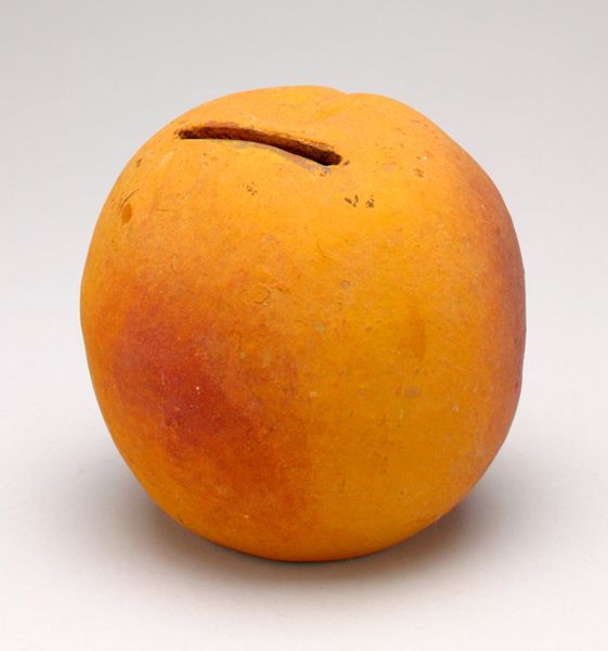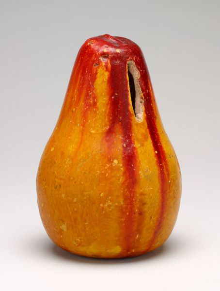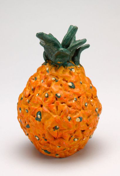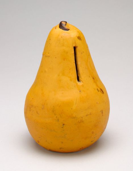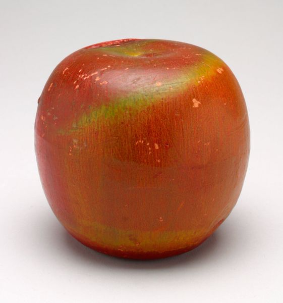 Editor: So, this is "Pear" by Claes Oldenburg, and it looks like it’s made from painted plaster. It's so simple, but the execution feels really considered. What do you see in it? Curator: It's crucial to consider Oldenburg's broader practice, elevating everyday objects. How does the shift in scale and material—from a perishable fruit to a durable sculpture—affect our relationship to consumption and the commodification of nature? Editor: That's fascinating, I hadn't thought about it that way. It makes you consider the labor involved in creating something so commonplace. Curator: Exactly. By examining the materials and processes, we uncover a commentary on mass production and the art world's role in assigning value. Editor: This has completely changed my perspective on the piece, seeing it as a commentary on consumerism rather than just a simple still life. Curator: And that shift in perspective is exactly the point, isn't it?