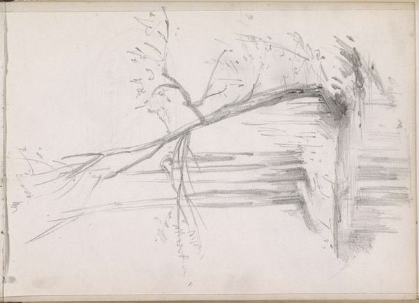 Johannes Tavenraat sketched "Bomen op het landgoed Rhederoord" with graphite, capturing a stark, horizontal tree trunk. This motif, seemingly simple, is rich with symbolism. The fallen tree is a potent symbol across cultures, from ancient myths to contemporary art. Think of the Norse Yggdrasil, a cosmic tree connecting realms, or the barren trees in Romantic paintings, reflecting human solitude. Here, the bare branches reach out like grasping hands, evoking a sense of loss. The motif echoes in Renaissance depictions of the crucifixion, where the barren tree symbolizes death and sacrifice. The viewer might feel an unconscious pull towards contemplation, reflecting on the cyclical nature of life and death, and the way such symbols evoke deep-seated, shared human experiences. This isn't just a tree; it's a mirror reflecting our collective memory.