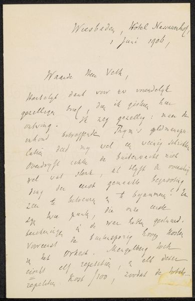 This letter to Cornelis Gerardus 't Hooft was composed in 1915 by Hendrick Peter Godfried Quack. It’s made with paper, and ink applied with a nib pen. These are very ordinary materials, but they speak volumes about the kind of communication that was valued at the time. The controlled loops and lines, the consistent pressure and flow of the ink, all indicate the importance of penmanship in the early 20th century. Handwriting was about more than just legibility; it was a skill, taught in schools and seen as an essential attribute. This letter offers a direct connection to the past. It shows how people like Quack took time and care to communicate with each other. Before email, that was how relationships were maintained. It makes you wonder about the value of these connections and the labor of communication today.