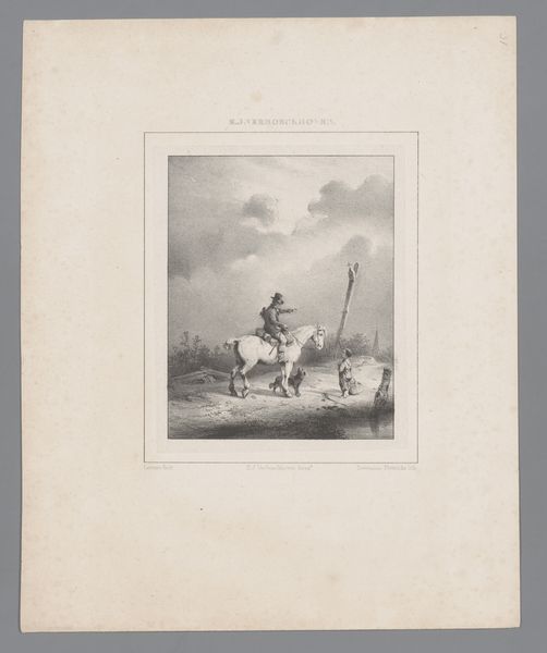 Paulus Lauters created this print titled 'De ruiter' whose date is unknown. It is currently held in the Rijksmuseum. Lauters lived and worked during a time of significant social change across Europe, with burgeoning industrialization, urbanization and their attendant class tensions. This print encapsulates many of these tensions, especially in relation to the perceived power of the aristocracy. Two figures sit on the wayside while a well-dressed man rides past on horseback. The contrast between the figures highlights the divide between the working class and the more privileged. Do these working class people resent the figure on horseback? Are they resigned to their fate? The cross in the background is a reminder of the role of religion in society, in particular how it often served to maintain the existing power structures. Lauters asks us to consider who is afforded mobility, who is not, and how those dynamics play out across the social landscape.
