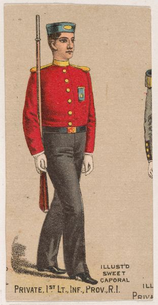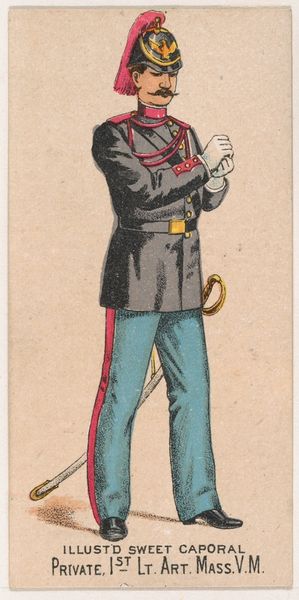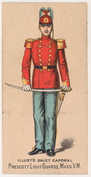 This small card, issued by the Kinney Tobacco Company, presents a Colonel from the 2nd Corps Cadets in Massachusetts. These cards, distributed with Sweet Caporal Cigarettes, reflect the late 19th-century cultural landscape, marked by industrial expansion and the pervasive influence of advertising. What strikes me about this image is how it encapsulates notions of masculinity and social status during this period. The Colonel, with his meticulously groomed beard and formal attire, is presented as a figure of authority. Yet, placed on a cigarette card, his image becomes a commodity, a tool to promote a product, intertwined with the growing culture of consumerism. The card also speaks to the era's fascination with military culture, a theme that frequently appeared in popular imagery. It prompts us to consider the relationship between commerce, militarism, and the construction of identity.