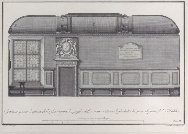 Curator: We’re looking at Bartolomeo Crivellari’s "Plate 5: View of the ceiling with its ornaments and frescoed paintings" from 1756, currently housed at The Met. It's an engraving of a highly ornate ceiling design. Editor: It’s fascinating how intricate and almost dizzying it is. It reminds me a bit of an architectural blueprint mixed with fine lacework. The level of detail in each section is striking; it's quite a visual feast. Curator: Indeed. The engraving meticulously documents a proposed ceiling design, typical of the Baroque era. Notice how Crivellari emphasizes the ornate plasterwork and frescoed paintings through contrasting shades and careful linework. One has to wonder about the accessibility of such lavish designs. It was not made for just anyone but for the upper classes. Editor: That makes me consider the material conditions of production here. Think about the engravers themselves, the labor and skill required to produce such detailed plates. This image is a product of a complex social system and speaks to a vast amount of craft work, from its initial design to its reproductive possibilities. This print served as a mode for diffusing this ornate architectural plan to other builders or even aristocratic sponsors. Curator: Precisely. The engraving allowed for the dissemination of this opulent aesthetic. Now consider, the geometric patterns aren't simply decorative; they also carry symbolic weight. For instance, certain shapes may reference classical motifs. We see here not only the craftsmanship but the ideologies of power at play during this historical period. This era had very fixed gender roles, and one might think, how would this room impact someone within a patriarchal home? Editor: I’m drawn to the interplay between high art and craft traditions inherent in the image itself. The architectural design elevates artisanal practices while the engraving, as a method of reproduction, blurs boundaries further, commodifying craft and artistic labour in the process. What we are really admiring here are plans to create labor and also the labor it took to draft these prints. Curator: Ultimately, this work offers a valuable lens through which to examine 18th-century aesthetics and social structures. It urges us to ponder about the power dynamics embedded in architectural spaces and the modes of circulating cultural ideas at that time. Editor: Agreed, and it reminds us that even seemingly static images are entangled with complex histories of labor, skill, and the constant circulation and consumption of artistic ideas and materiality.