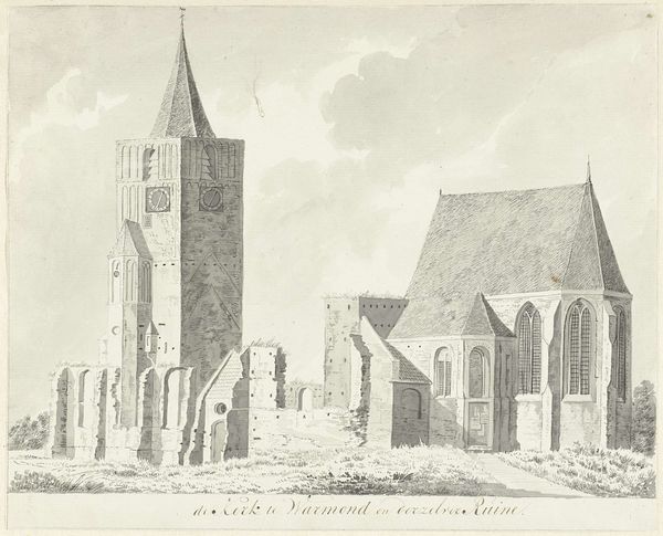 This delicate drawing of the church in Warmond was created by Abraham de Haen the Younger, an artist working in the Netherlands in the first half of the 18th century. During this period, the Dutch Republic was transitioning from its Golden Age, and artists often turned to familiar, local subjects. De Haen's rendering of the church, a central gathering place in the community, speaks to themes of stability and continuity amidst societal change. The attention to architectural detail highlights the importance of religious institutions in Dutch society and daily life. While De Haen followed traditional conventions in his choice of subject, his delicate technique lends the drawing an emotional intimacy. The subtle details invite personal reflection. The small figures near the church suggest the human scale of faith and community. The drawing serves as a gentle reminder of the enduring presence of these institutions, and of their impact on individual lives.