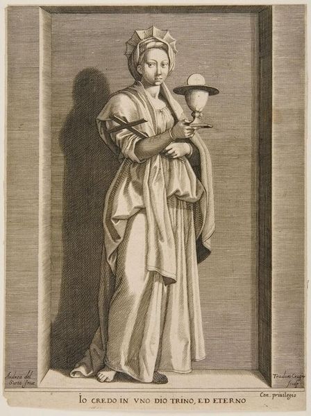 This engraving of the Duchess of Chartres, made by Gerard Valck, captures the essence of aristocratic life. The Duchess is depicted beside a potted plant, a seemingly simple motif that carries rich symbolic weight. The plant, carefully cultivated, embodies themes of growth, prosperity, and controlled nature—mirroring the cultivated refinement expected of the aristocracy. We see echoes of this across eras, from ancient Roman gardens to Renaissance allegories of virtue. Consider how such imagery evolves: In medieval tapestries, plants signified paradise; here, they signify domestic luxury. This seemingly innocuous detail evokes powerful, subconscious associations with status and cultivated beauty, inviting us to consider how social aspirations are visually encoded and perpetuated through art. It serves as a reminder of how symbols shift and adapt, resonating across time.