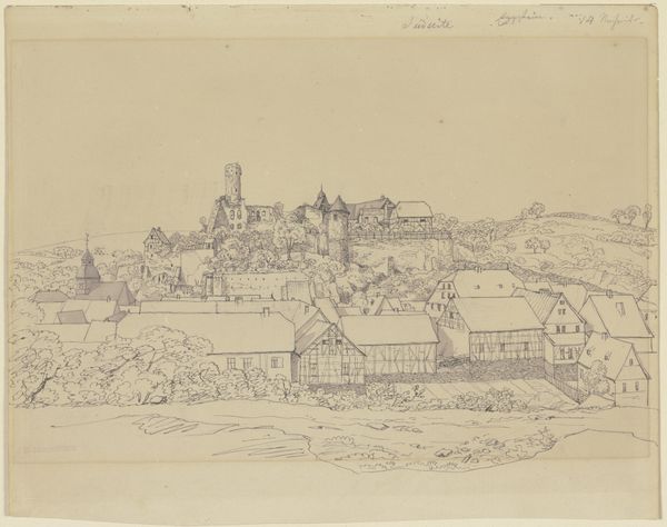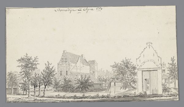 Editor: This drawing, "Gezicht op Giessenburg" by Cornelis Pronk, created sometime between 1730 and 1780, uses delicate pencil work to depict a Dutch scene. It has such a peaceful, quiet quality. What do you see in this piece? Curator: This sketch provides a valuable glimpse into the social landscape of the Dutch Golden Age. Note how Pronk focuses on the ordinary. We see no grand historical figures, no glorification of wealth, but a modest village scene. How does this contrast with the typical narratives we often see from this period, narratives that focus on power and commerce? Editor: It really doesn't seem focused on the traditional heroic narratives. It’s almost mundane, but in a beautiful way. Curator: Precisely! Pronk seems to be making a statement about the value of everyday life. The focus on the landscape and the daily lives of its inhabitants reflects a shift in perspective – a subtle resistance against the dominant narratives of the elite. Think about who had the leisure time and resources to commission or create art then. Do you think that reality plays into the subject? Editor: It's interesting to consider this piece in terms of who it might have been made *for*, not just *by*. This focus on the 'ordinary' almost feels radical when you consider it as a conscious choice. Curator: Exactly. And remember, even seemingly simple depictions can hold layers of meaning, prompting us to consider the complex relationship between art, society, and individual experience. Editor: This has completely changed how I see the drawing. It's not just a quaint landscape anymore, it's a subtle commentary. Curator: Indeed. And that's the power of contextualizing art, allowing us to see it not just as an object of beauty, but as a reflection of societal values and a potential voice for the marginalized.