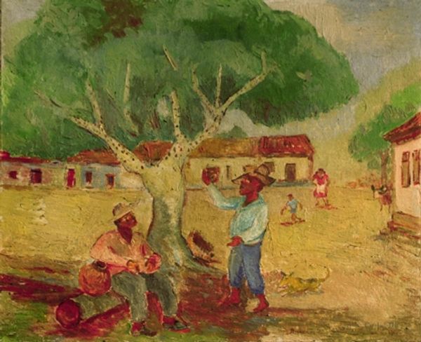 Anita Malfatti made this painting, “Itanhaém”, and what hits you first is that bold palette, right? I love how she's not afraid to mix those bright hues with a kind of sun-drenched haze. And look at the way she builds up the layers. It's like she's wrestling with the paint to get the essence of the place down. Thick strokes, thin washes, all working together. There, see that roof in the foreground? The way she's layered those reds and browns, it's not just a roof, it’s a physical thing, catching the light. It's like she's saying, ‘this is real, this is here.’ I can almost feel a kinship between her and someone like Marsden Hartley, with that same directness and love of place, but she's doing her own thing, pushing those colours to a new level. For me, it’s all about that tension between control and letting go, which is, in the end, what painting is all about.