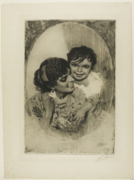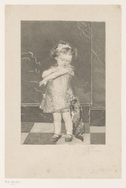 Abraham de Miranda created this print, 'Groep kinderen,' using lithography on paper. The composition immediately strikes one as a dense and somewhat unsettling aggregation of faces. The artist's use of stark contrasts in tone intensifies the emotional impact. The figures are closely packed, creating a sense of claustrophobia. De Miranda plays with light and shadow, particularly emphasizing the children's eyes. Note how the artist uses a semiotic system of signs, using exaggerated expressions and contrasting light to provoke emotional unease. The distorted features and tonal imbalance challenge conventional aesthetics, destabilizing our expectations and prompting a deeper reflection on childhood's complex emotional landscape. The lithographic technique lends itself to a raw texture, accentuating the sense of immediacy. The formal structure of the artwork—its density and emotional volatility—pushes us to reconsider the fixed meanings we often attach to childhood innocence. It functions as part of a broader artistic dialogue that questions the very structures of perception and representation.