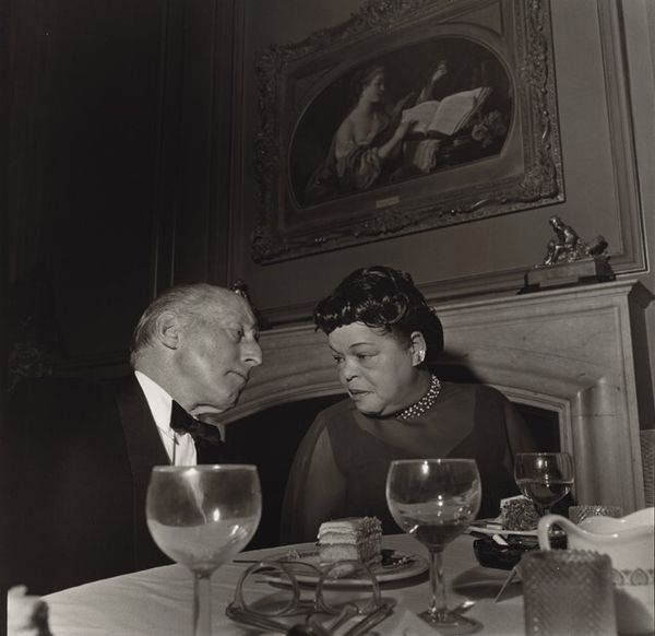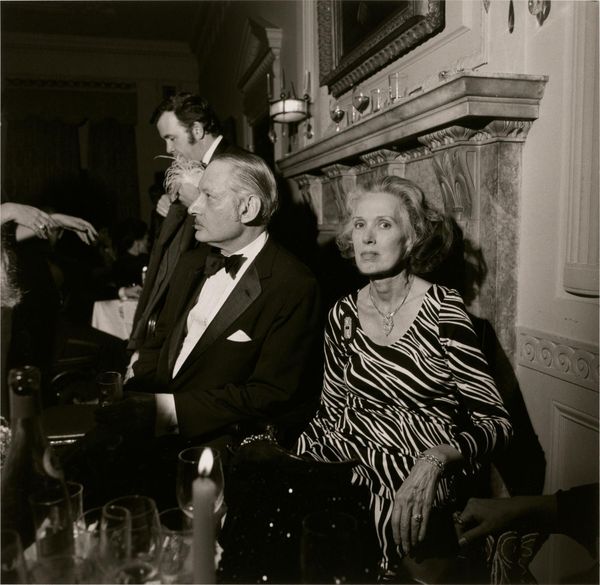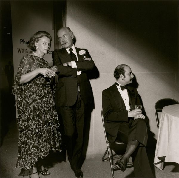 Larry Fink made this photograph, Benefit, at The Corcoran Gallery of Art, in Washington, D.C.. It's a fascinating piece, and what grabs me first is the light, how it carves out these figures from the darkness, almost like a stage play. The whole image has this grainy, almost velvety texture, doesn't it? You can practically feel the plushness of the room, the stiff fabric of the tuxedo, the glint of the jewelry. It's not about sharp details; it's about mood, about capturing a moment, a feeling. Look at the way the shadows stretch and distort behind the figures, adding this layer of mystery, even unease. Thinking about other artists, someone like Diane Arbus comes to mind, with that similar interest in capturing the raw and unvarnished aspects of human experience. But really, Fink is doing his own thing here. He’s not afraid to let the image be a little rough around the edges, a little ambiguous. And that's where its power lies, in that space between what we see and what we think we know.